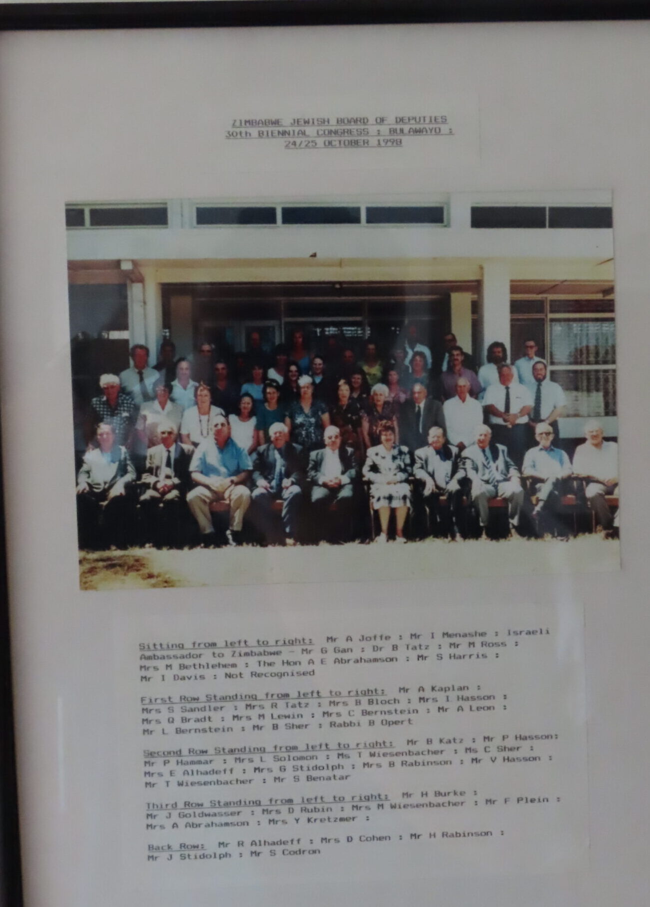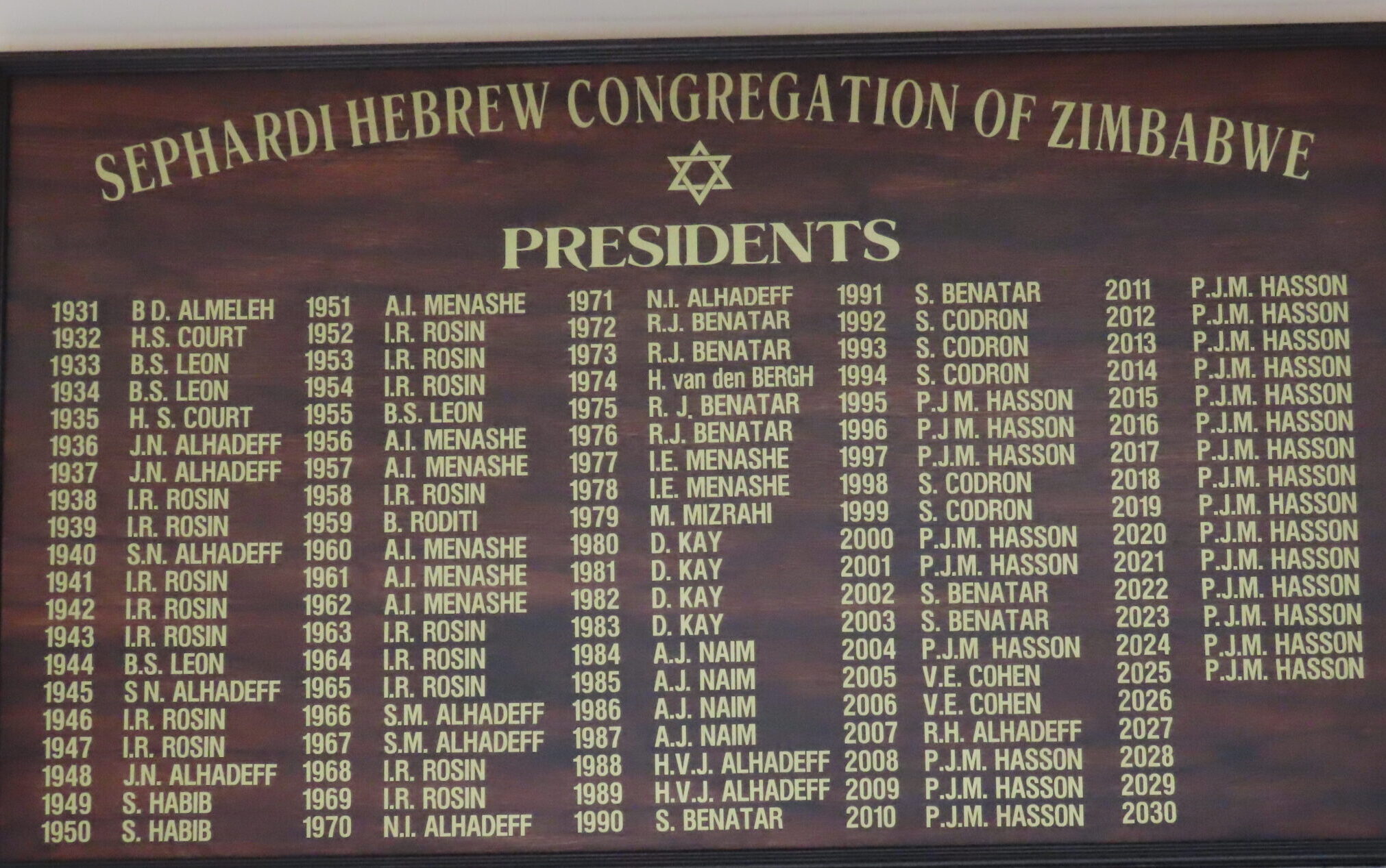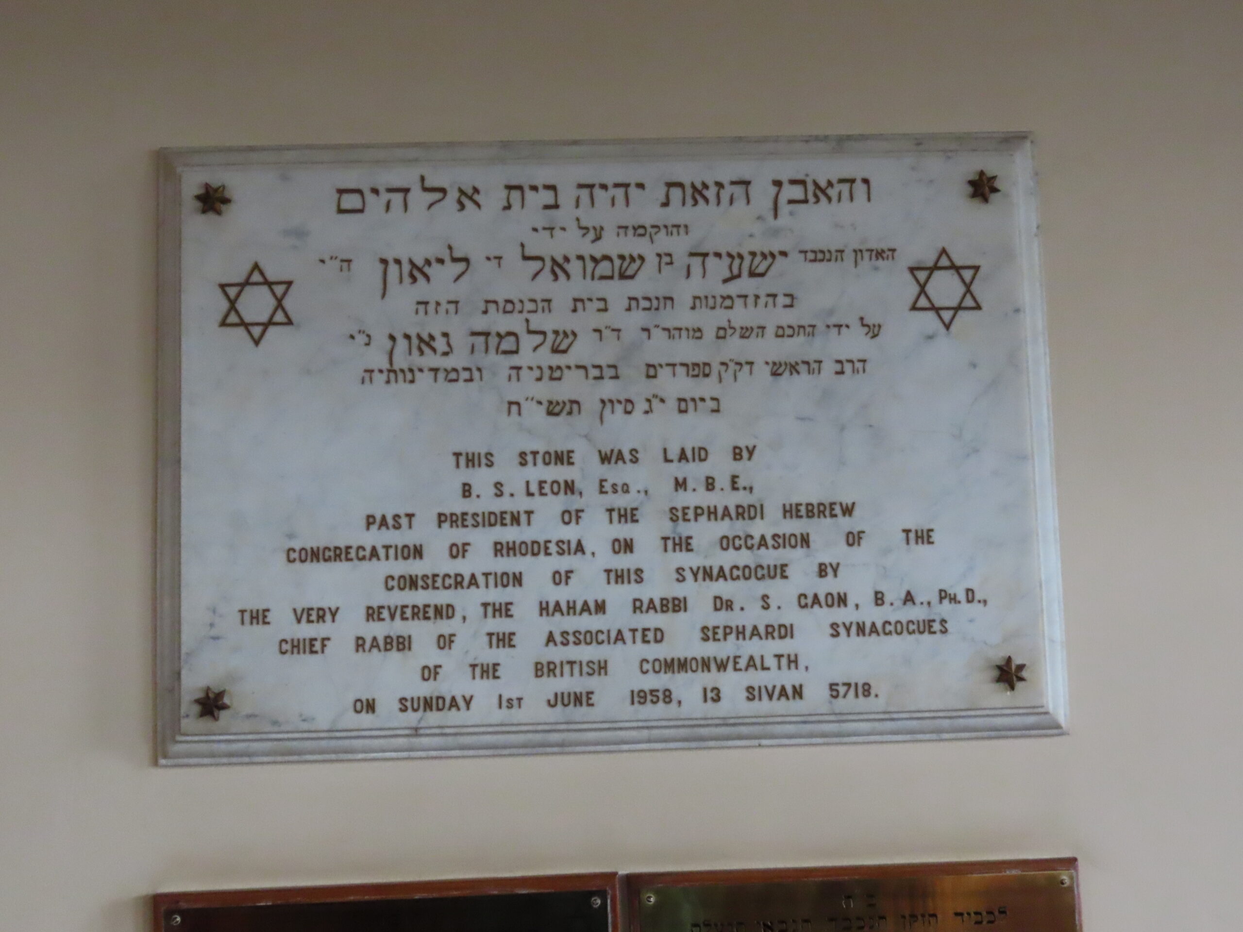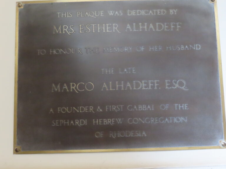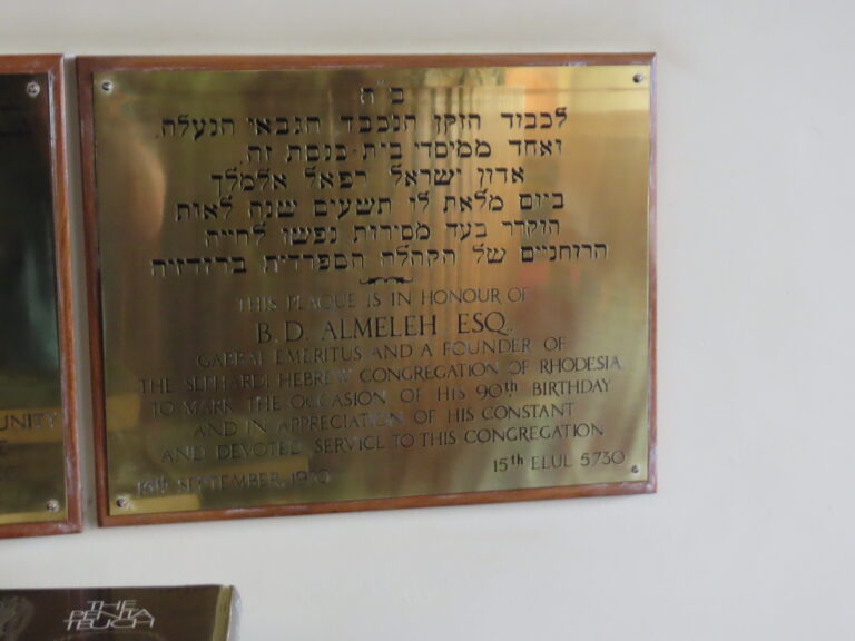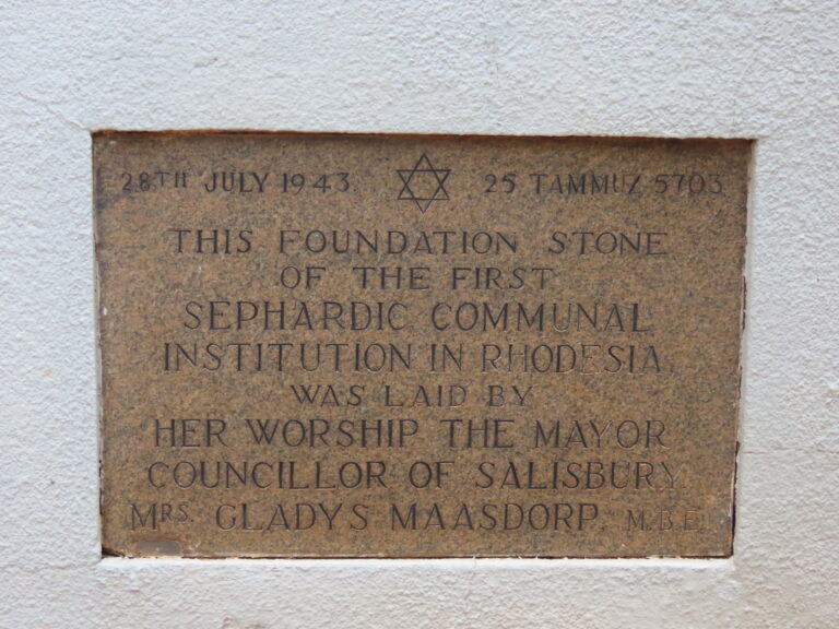 After the completion of the High Festivals the Hebrew Sephardic Society of Rhodesia, the first general meeting was held at the Palace Theatre, First Street, Salisbury, on Sunday 18th October 1931. Much water has passed under the bridge since that historic day, and this short edition attempts to cover some of the events and decision taken during the last eventful 75 years. The 2005/2006 Committee made the decision to put out this small publication to mark the occasion. It has also been argued that it would not be worth while to produce this book because of the dwindling numbers of this Congregation. I have maintained that to produce a record for posterity.